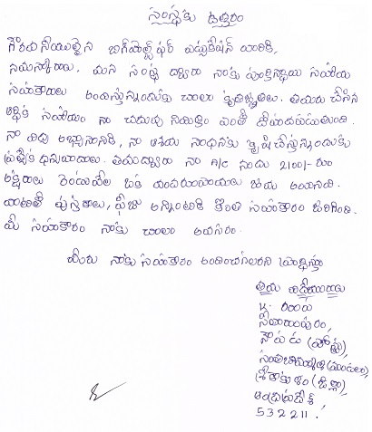 | Executive committee members talked with Rupa Kolla during voice conference on 07th February 2015. They enquired about her education and family welfare. During the conversation she expressed her view that she wants to become a teacher. The Executive committee advised her to show more attention in her studies and get more marks in future examinations to become a teacher. |