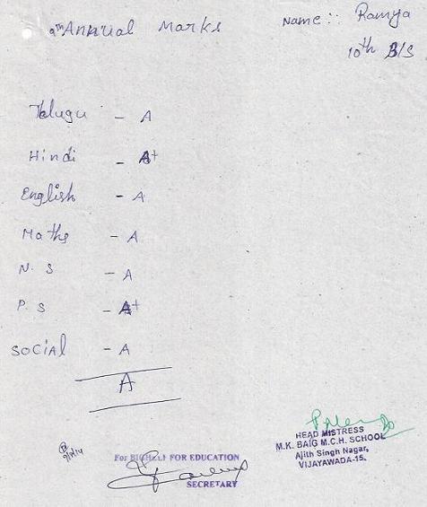 | Ramya Mandepudi passed 10th class with GPA 6.5 in the academic year 2014-15 |