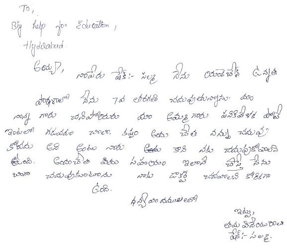| Bighelp thanks Vasantha Kota for kindly sponsoring the education of Salma Shaik. |