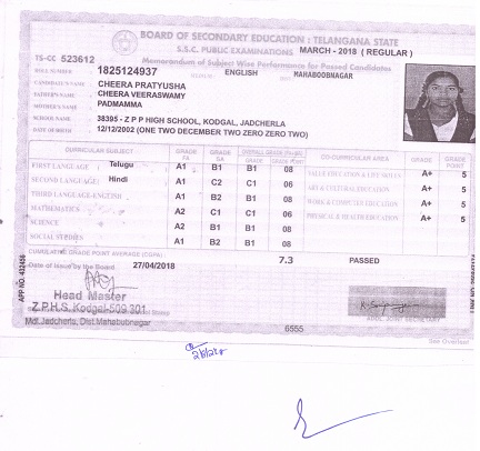 | Mrs. Sirisha talked with Prathusha Cheeda on 30thJanuary2017. She reviewed performance and advised her to get good marks in all subjects. She also enquired about the list of items being provided by project director every month. She asked about family status and personal problems being faced by Prathusha. |