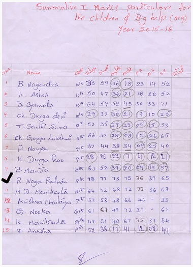 | Bighelp thanks Chandrasekhar Seelam for kindly sponsoring the education of Naga Ratnam Rayudu. |