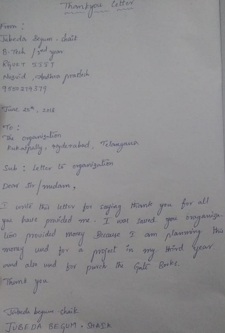 | Bighelp thanks Vibha Mohan for kindly sponsoring the education of Jubeda Begum Shaik. |