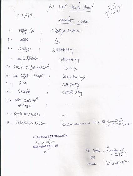 | Bighelp thanks Rajendra Tunuguntla for kindly sponsoring the education of Rajya Lakshmi Saride. |