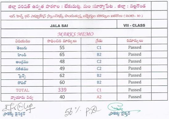 | Mr. Srinivasa Rao AED (Projects) talked with Sai Jala on 13th December 2017. He reviewed performance and made suggestions to improve in Biology and Physics subjects. He enquired about the list of items being provided by project director every month. He asked about family status and personal problems being faced by Sai Jala. |