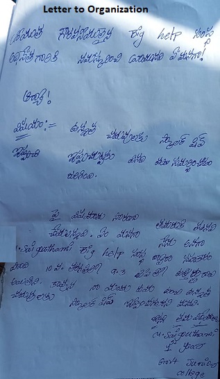 | Mr. Srinivasa Rao AED (Projects) talked with SaiGouthami Madaraboina on 1st February 2017. He reviewed performance and made suggestions to improve in English subject. He enquired about the list of items being provided by project director every month. He asked about family status and personal problems being faced by SaiGouthami. |