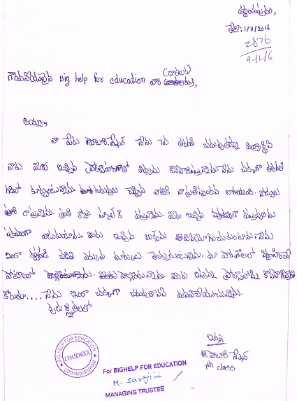| Bighelp thanks Sivaramakrishna Kandra for kindly sponsoring the education of Sekhar Paluri. |