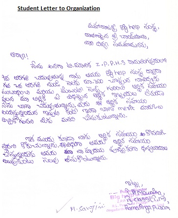 | Executive committee members talked with Mounika Tatiparthi during voice conference on 06th February 2017. They enquired about her education and providing needy things by his Project Director. She replied that the PD is fulfilling his needs. The Executive committee advised him to study well and get good marks in future examinations. |