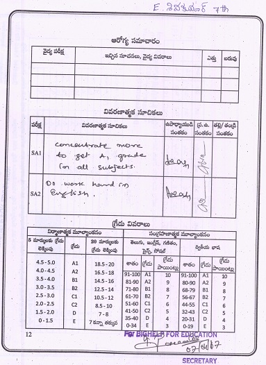 | Mr. Srinivasa Rao AED (Projects) talked with Shiva Kumar Ellagundla on 1st March 2017. He reviewed performance and made suggestions to get good marks in all subjects. He also enquired about the list of items being provided by project director every month. He asked about family status and personal problems being faced by Shiva Kumar. |