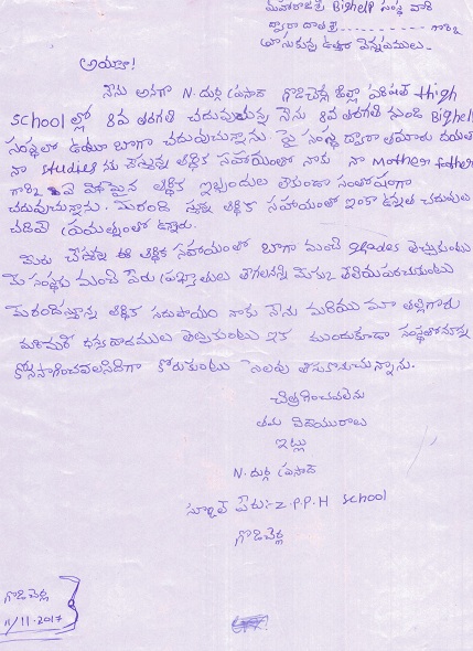 | Bighelp thanks Sreeedhar Katta for kindly sponsoring the education of Durga Prasad Nanepalli. |