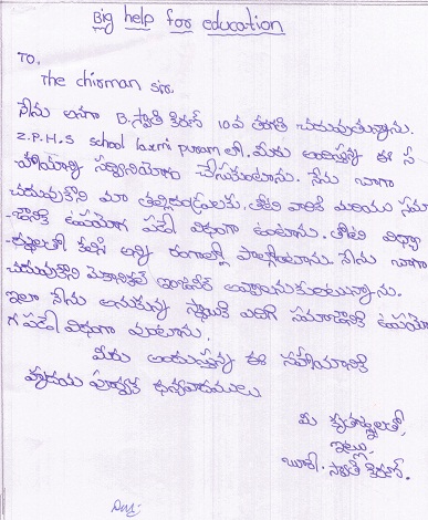 | Bighelp thanks Pradeep Arumalla for kindly sponsoring the education of Swathi Kiran Bure. |
