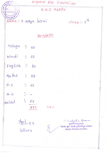 | Bighelp thanks Sreekanth Kodiganti for kindly sponsoring the education of Surya Lakshmi Siddi. |