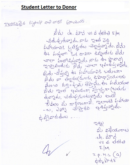 | Bighelp thanks Sreeedhar Katta for kindly sponsoring the education of Mouna Chiluka. |