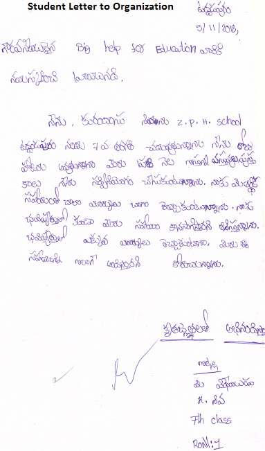 | Bighelp thanks Anitha Bachina & Srinivas Maddineni for kindly sponsoring the education of Siva Kuramdasu. |