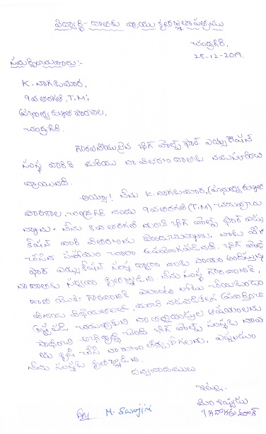| Bighelp thanks Shobha Thimmaiah & Pradeep Krishnamurthy for kindly sponsoring the education of Naga Kumar K. |