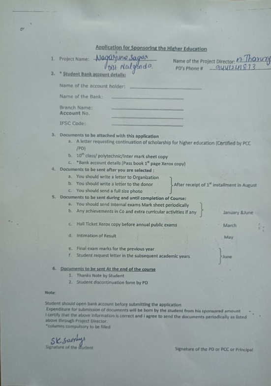 | The sponsorship for Samiya Shaik has been continued by Anuradha Kancharla |