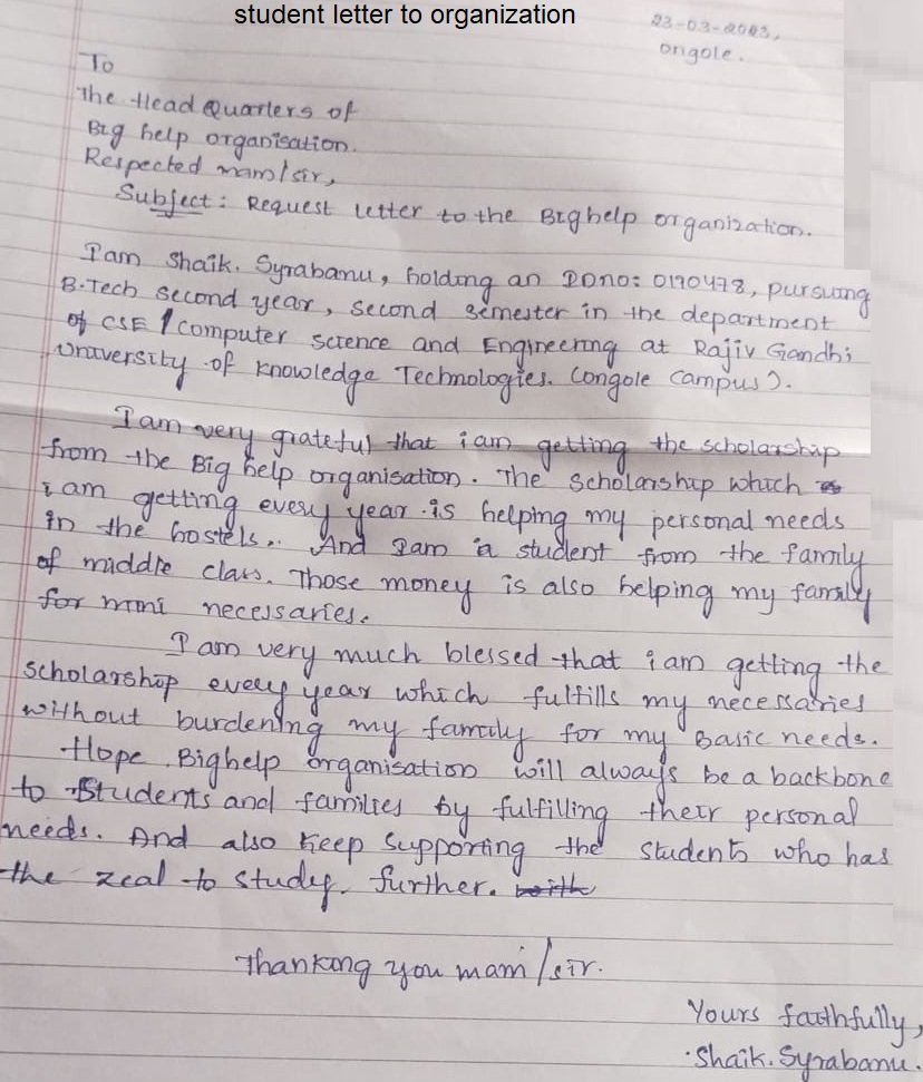 | The sponsorship for Syrabanu Shaik has been continued by Bighelp Boston Chapter |