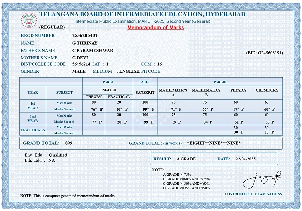 Bighelp thanks D2613 - Anonymous donor for kindly sponsoring the education of Thrinay Ghantamatam. |
