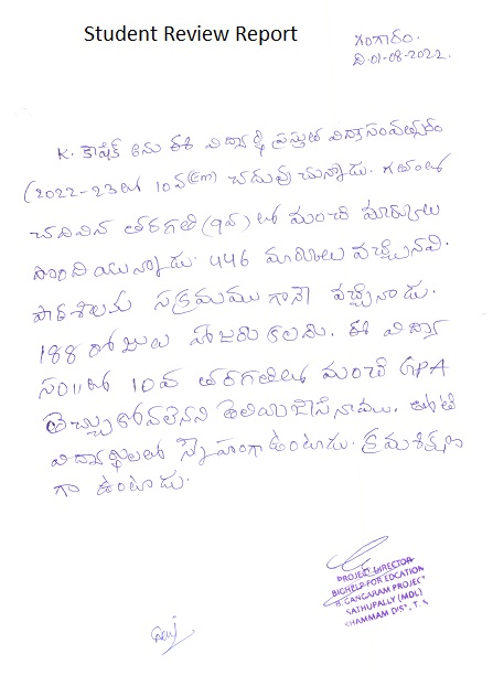 Kowshik Kolli has passed 10th Grade with 9.3 GPA on 10-May-2023.
