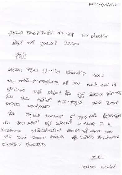 Bighelp thanks Bighelp Brightstar for kindly sponsoring the education of Aravind Bellam. |