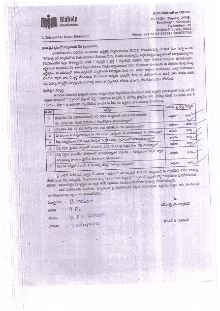 | Bighelp thanks Venkatakamakshi Jahnavi Giddaluri for kindly sponsoring the education of Mohan Boora. |