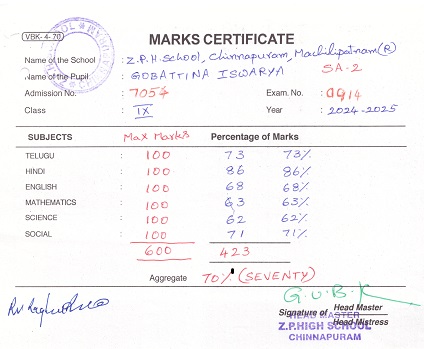 The sponsorship for Iswarya Gobattina has been continued by Srinivasa Rao & Aparna Patchala |