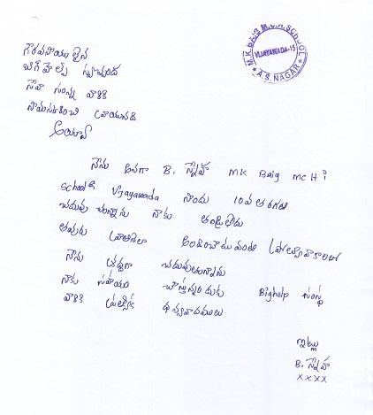 | Bighelp thanks Surya Motukuri for kindly sponsoring the education of Sneha Barre. |