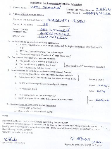 The sponsorship for Bindu Daravath has been continued by Praveen Kumar Valapadasu |