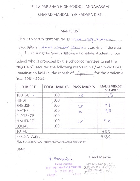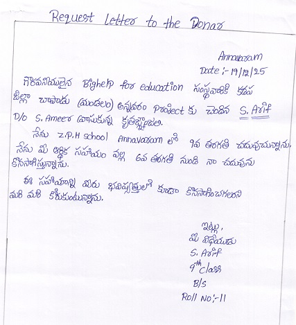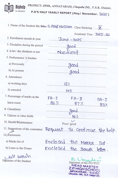 | Bighelp thanks Ravi & Kamala Uppalapati for kindly sponsoring the education of Arief Hussain Shaik. |