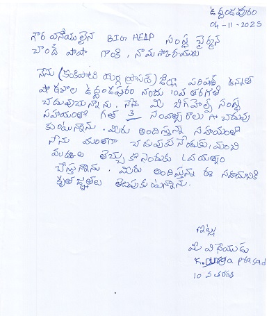 | Bighelp thanks Preethi Dacha for kindly sponsoring the education of Veera Durga Prasad Kankipati. |