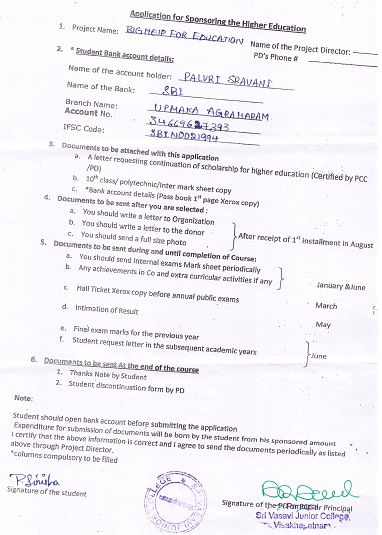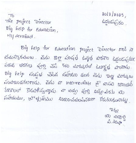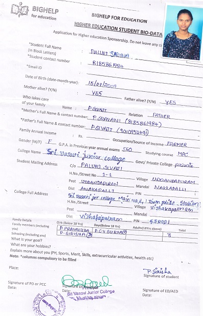 Bighelp thanks Deepak Wadhwa for kindly sponsoring the education of Sirisha Paluri. |