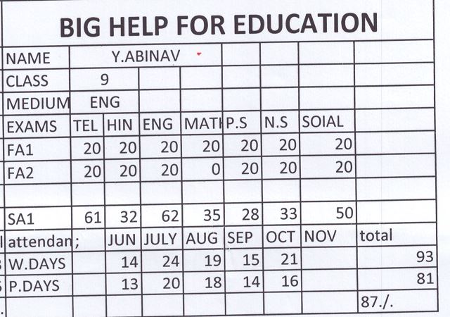 | Bighelp thanks Aruna Kumari Manipatruni for kindly sponsoring the education of Abhinav Yanamala. |