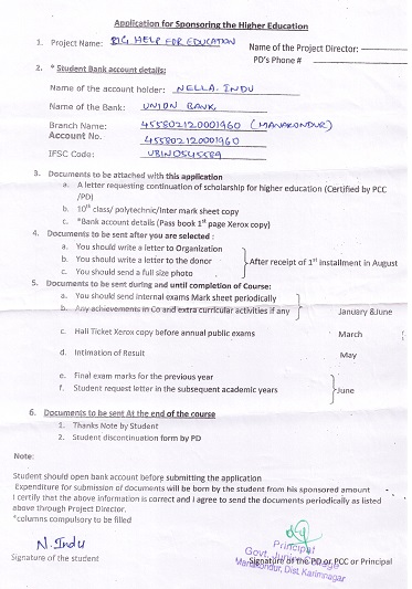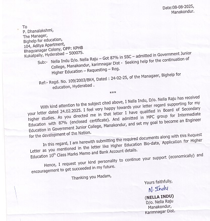 Bighelp thanks Lakum Rajaiah for kindly sponsoring the education of Indu Nella. |