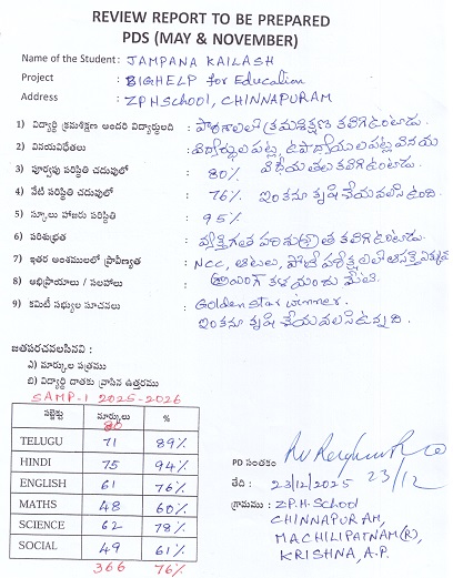 | Bighelp thanks Ramya and Sandeep Soman for kindly sponsoring the education of Kailash Jampana. |