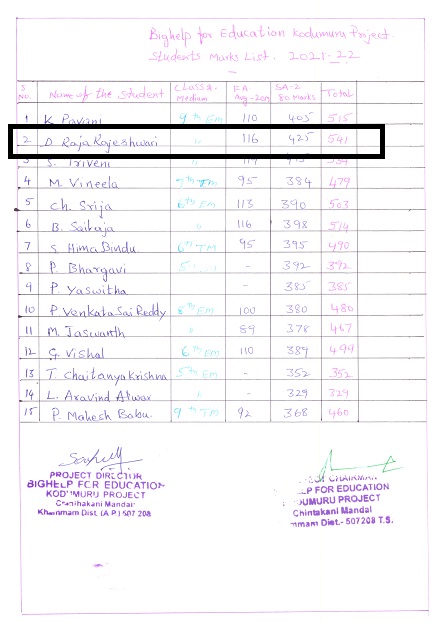 | Bighelp thanks Bighelp Brightstar for kindly sponsoring the education of Raja Rajeshwari Dodda. |