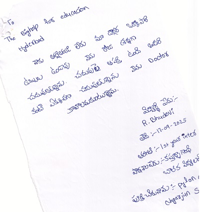 | Bighelp thanks Vijay Konda for kindly sponsoring the education of Devi Pallavola. |