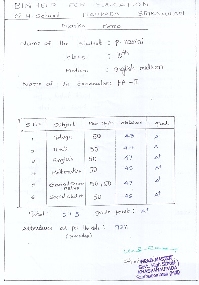 | Bighelp thanks Preethi Dacha for kindly sponsoring the education of Harini Parapati. |