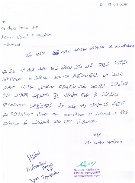 Harsha Vardhan Marri has passed 10th Grade with 431 Marks on