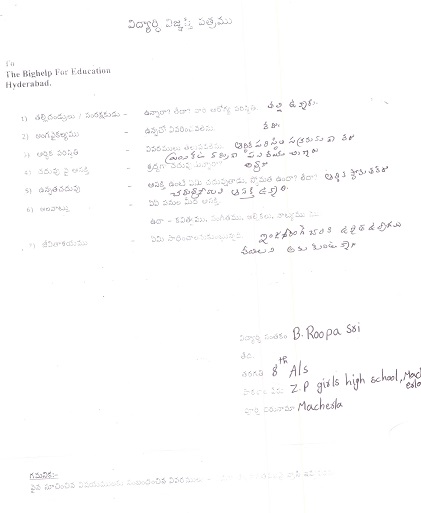 Bighelp thanks Sree Ramachandra Murthy Ravuri for kindly sponsoring the education of Rupasri Bejjam.
