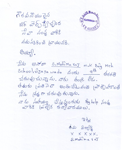 Bighelp thanks Priyanka Pradhan for kindly sponsoring the education of Mahima Raj Sarkaru .