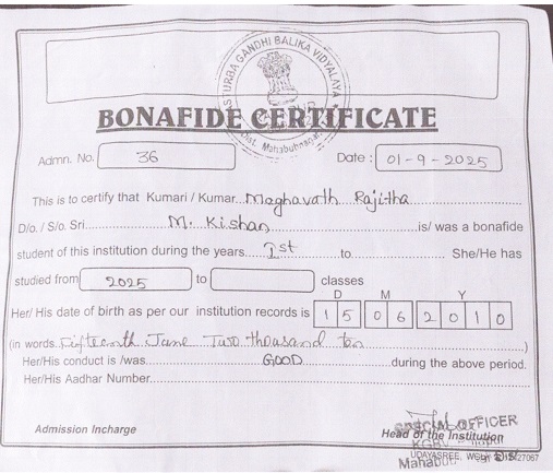 C/O Devi Meghavath H.No: 5-31 Eeralapalli Thanda Rajapur Mandal Mahaboobnagar Dist. Telangana, India 509301 |
