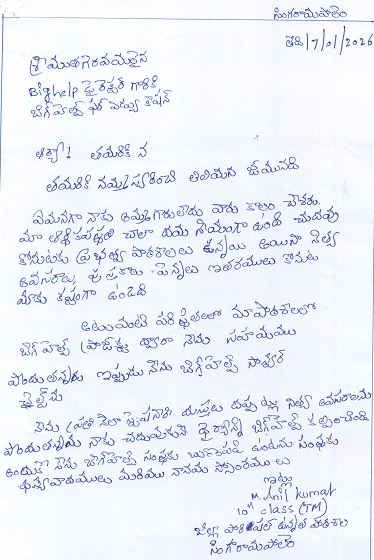 | Bighelp thanks Gayatridevi and Ravi Ika for kindly sponsoring the education of Anil Kumar Mankena. |