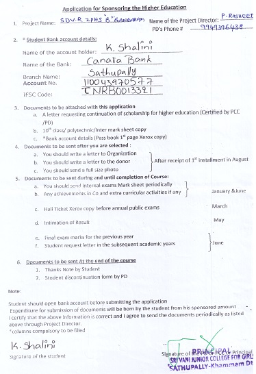 | Bighelp thanks Veera Reddy for kindly sponsoring the education of Shalini Konda. |