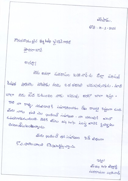 | Bighelp thanks Shashidhar Sultanpur for kindly sponsoring the education of Badrinath Surakasula. |
