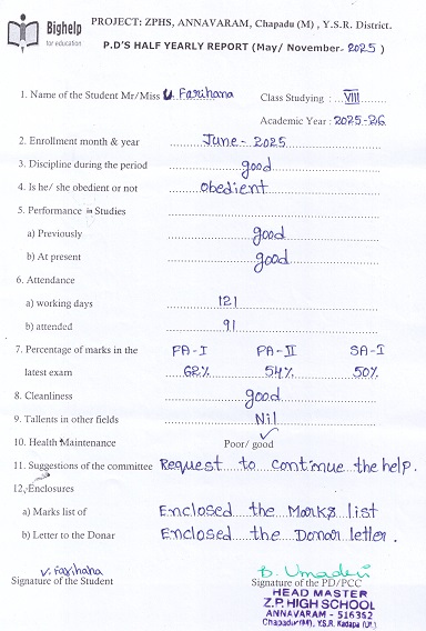 | Bighelp thanks Rishik Vihaan Rajesh Muguda for kindly sponsoring the education of Farihana Venkannapalli. |