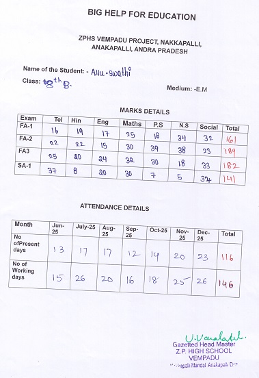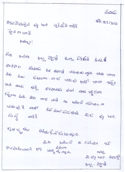 | Bighelp thanks Anuradha Batchu for kindly sponsoring the education of Swathi Allu. |