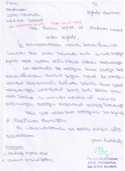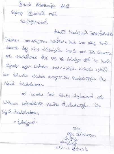 | Bighelp thanks Kiran & Sravanthy Ganji for kindly sponsoring the education of Kirthana Gandamalla. |