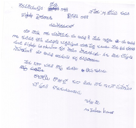 | Bighelp thanks Satheesh & Manjula Donthy for kindly sponsoring the education of Joshan Kumar Meegada. |