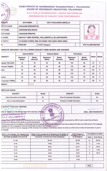 Deekshitha Janagam has passed 10th Grade with 450 Marks on