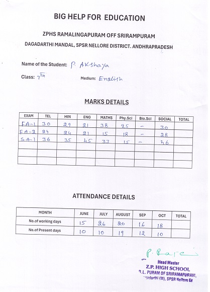 Bighelp thanks Balaji Joga for kindly sponsoring the education of Akshaya Pydi.