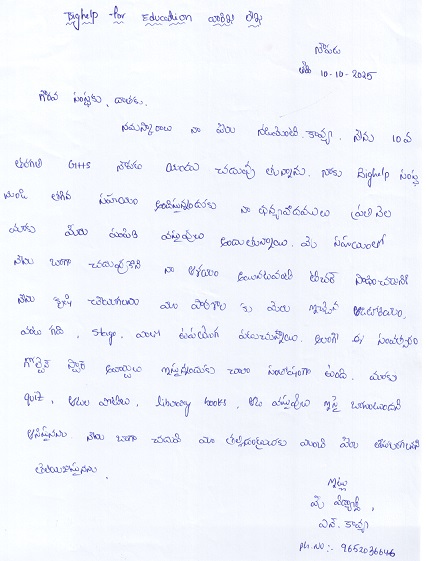 Bighelp thanks Microsoft Matching Gifts Program for kindly sponsoring the education of Kavya Nadiminti.